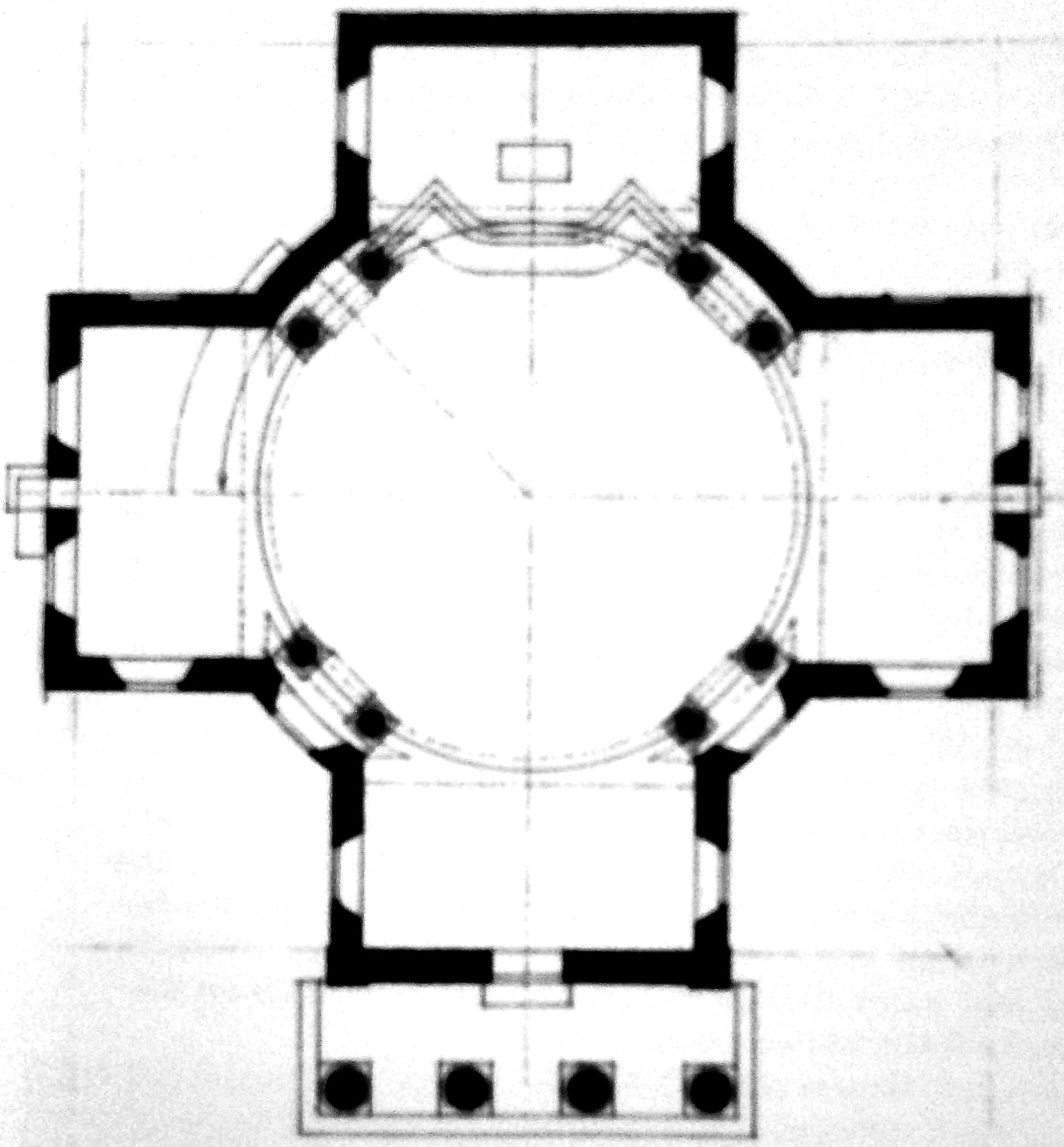 | Barocke Kirche auf griechischem Kreuz. Heute ohne Ausstattung. | |